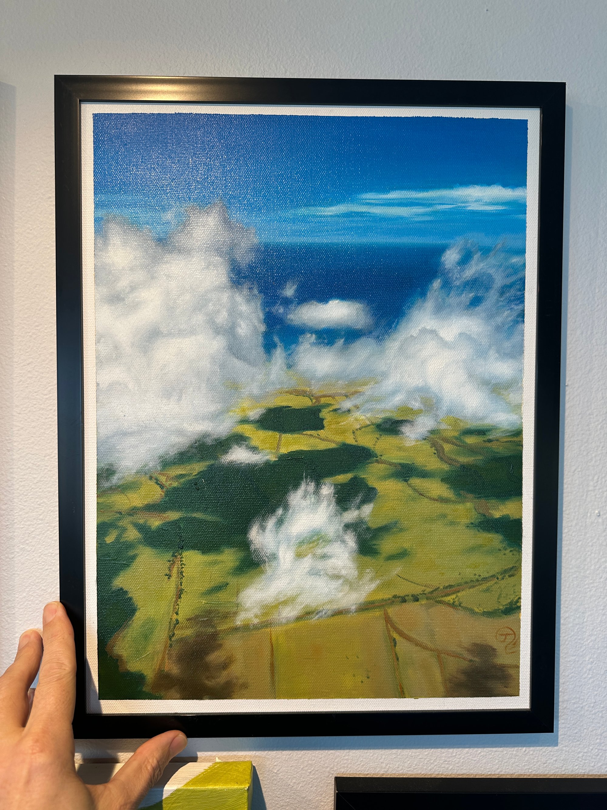 12x16 oil on canvas sheet of birdseye view of Maui Hawaii
